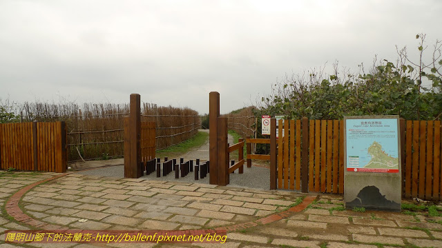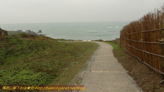 沿著步道,一道道用竹子編成的防風擋牆簇立在步道兩側,右方有叉路,準備先往右走~